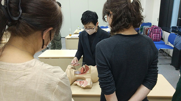 実習では、お一人おひとりの手の動きを確認し指導させていただきました。すでに資格を取得されたDICMの皆様、実習サポートをしていただきありがとうございました。